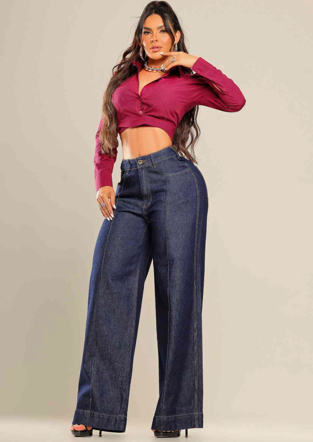 A calça pantalona jeans é a combinação perfeita entre estilo e conforto. Com modelagem ampla das pernas e caimento impecável, ela valoriza a silhueta enquanto proporciona liberdade de movimento. Ideal para compor looks modernos e despojados, essa peça é versátil e se adapta facilmente a diferentes ocasiões – do casual ao mais elegante.