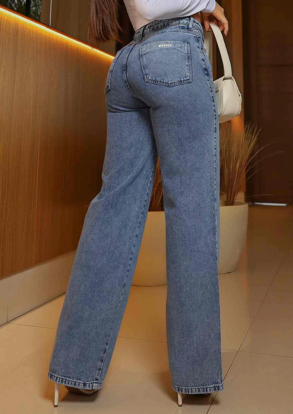 A calça jeans wide leg é uma peça versátil e estilosa que possui pernas largas e uma modelagem mais solta, garantindo conforto e movimento. Ideal para quem busca um visual moderno e despojado, essa calça é perfeita para compor looks casuais e cheios de personalidade. Além disso, a calça jeans wide leg é uma excelente opção para alongar a silhueta e valorizar diferentes tipos de corpo.