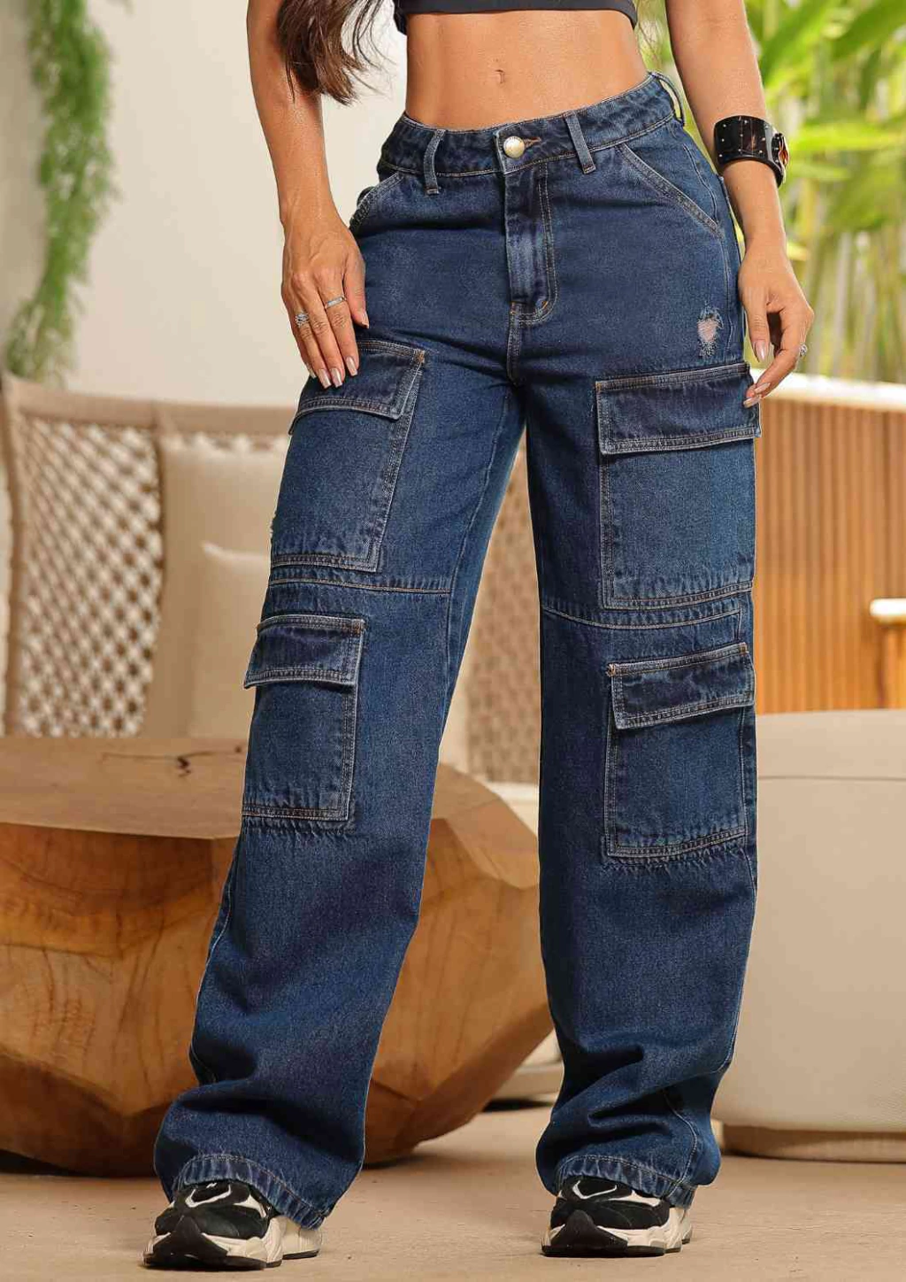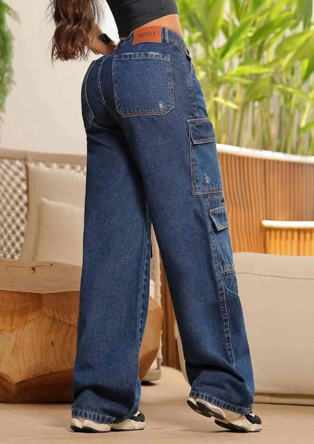 CALÇA JEANS FEMININA WIDE LEG CARGO - C776-2A
