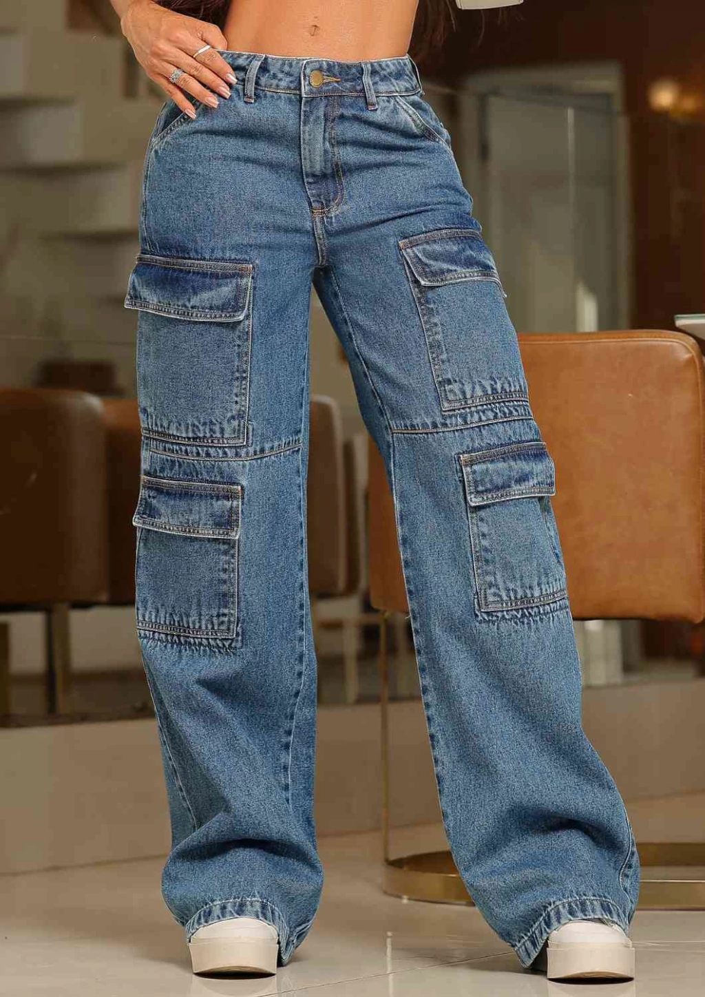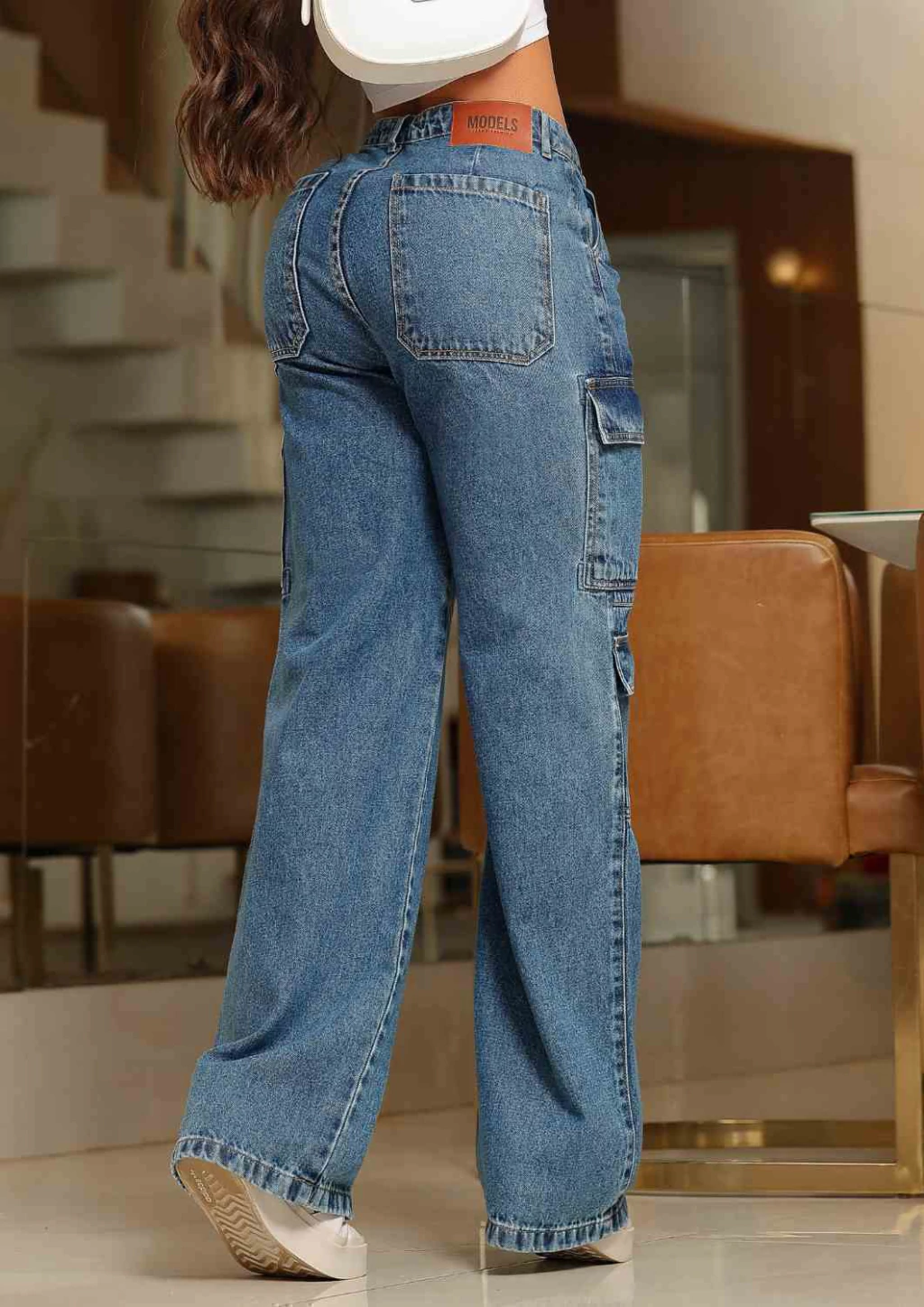 CALÇA JEANS FEMININA WIDE LEG CARGO - C776-1A