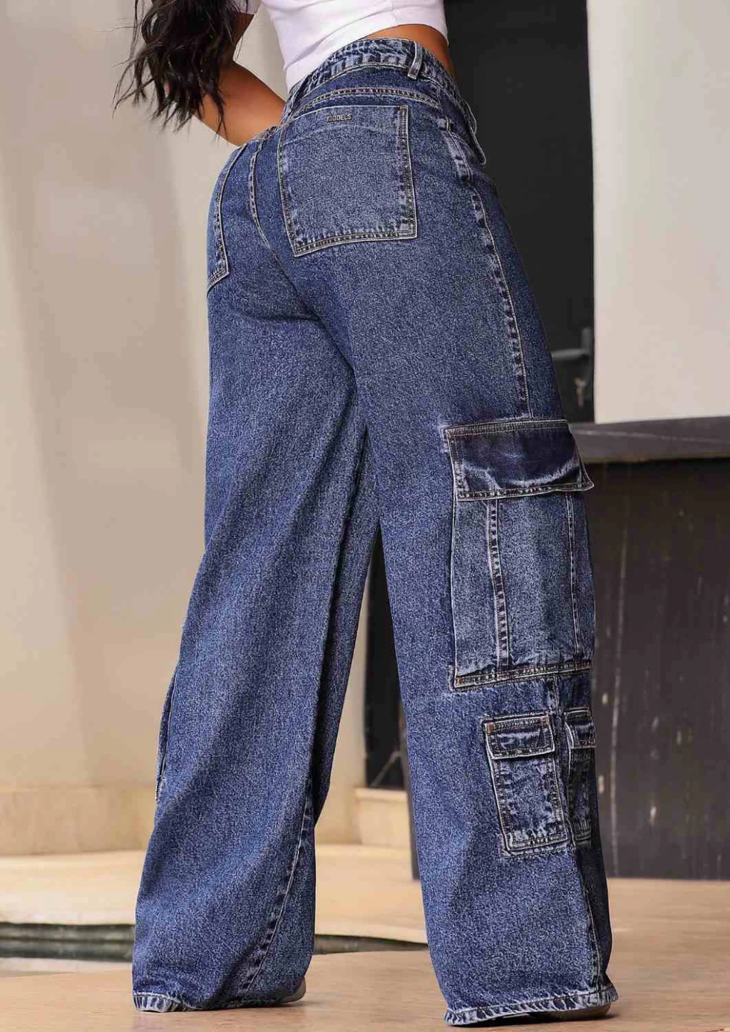 CALÇA JEANS FEMININA WIDE LEG CARGO - C780-01