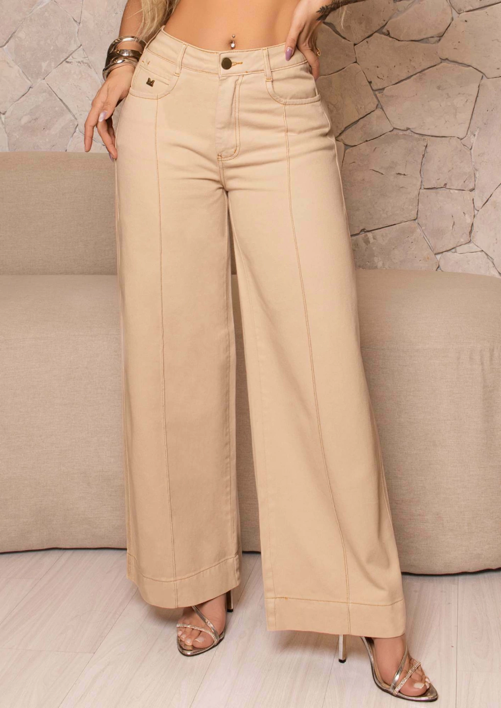 Use com cropped, camisa de alfaiataria ou até uma t-shirt básica — a Calça Wide Leg Marfim vai te acompanhar do dia a dia ao evento especial com muito estilo.